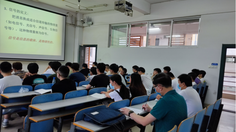 童耀南院长在15215教室听取了欧阳竞成老师的《信息论与编码》课程,并在课间休息时间与欧阳竞成老师进行了沟通交流。他充分肯定了欧阳老师教学准备充分,授课深入浅出,课堂秩序良好。他强调全体任课老师要贯彻学生中心、产出导向和持续改进理念,宣讲培养目标和毕业要求,效围绕课程目标开展教学,不断提高教学质量。