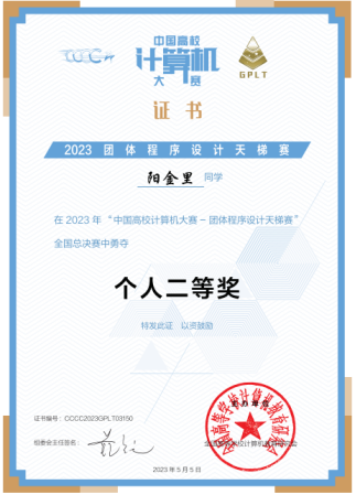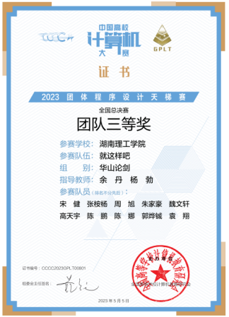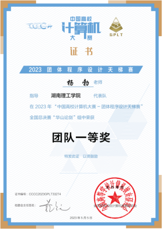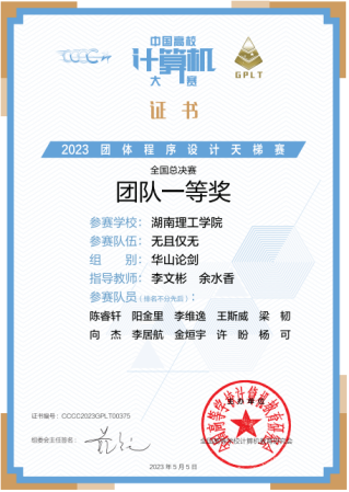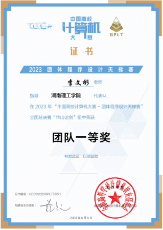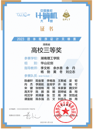 第八届中国高校计算机大赛-团体程序设计天梯赛全国总决赛于2023422日下午举行。大赛有来自全国31个省级行政区480所高校报名,共计1624支队伍16167位学生参本次大赛,我校共派出由信息学院和数学学院李居航、阳金里、李维逸王斯威陈睿轩魏文轩向杰30位学生组成的三支队伍参赛,经过三个小时的激烈角逐我校学生共获全国团队一等奖奖1项、三等奖奖1项,湖南省高校三等奖1其中,阳金里、李居航、金烜宇3人获全国个人二等奖,李维逸王斯威7人获全国个人三等奖的好成绩。本次学生参赛并取得喜人成绩,是长期以来,我校教务处、信息学院高度重视学科竞赛的组织,李文彬、杨勃、黄冬、余丹等老师指导下,秉承“赛教融合”的教育理念,开展以学生为中心的混合式教学,充分调动学生的学习积极性的效果体现,也是不断加强计算机科学与技术国家级一流本科专业、软件工程湖南省一流本科专业建设的阶段性成果。