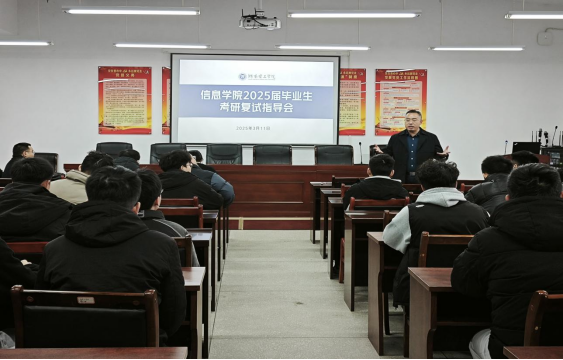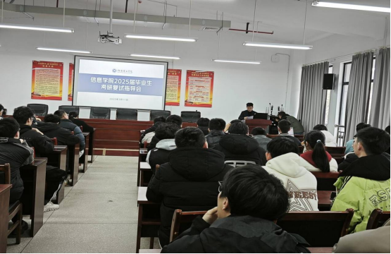 戴华介绍了我院2025年的考研初试基本情况,并从复试前的准备、复试过程中的注意事项、复试后的注意事项三个方面对学生进行讲解,希望信息学子能在复试中取得好成绩,顺利进入理想的研究生院校。