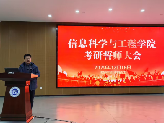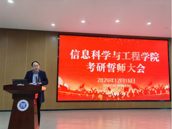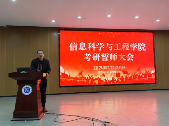 为即将踏上考研战场的学子们加油助威、坚定信心,12月16日上午,信息学院在17118会议室举行2025届考研誓师大会。学院院长童耀南、副院长戴华、副院长周峰和毕业班辅导员及班主任代表出席,党委副书记付亚子主持,2025届考研学子参加。