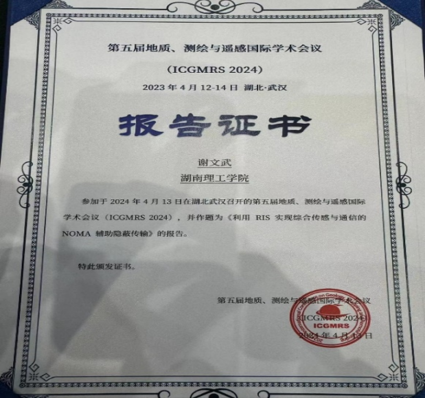 2024年4月12至14日,中国地质大学(武汉)主办的“2024 5th International Conference on Geology, Mapping and Remote Sensing(第五届地质、测绘与遥感国际学术会议)”在武汉顺利举行。此次会议汇聚了来自世界各地的众多专家和学者,我校信息与通信工程学科物联网与边缘智能方向的谢文武副教授,作为特邀专家出席了会议。