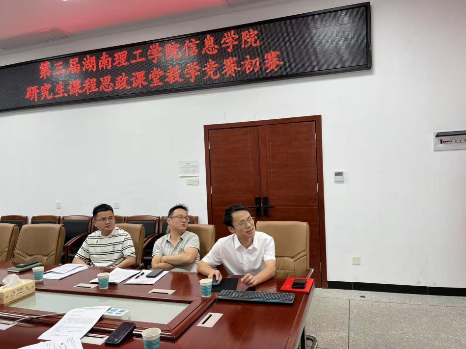 2025年6月20日上午,湖南理工学院信息科学与工程学院第三届研究生课程思政课堂教学竞赛在17517教室顺利举行。此次竞赛旨在深入贯彻落实立德树人根本任务,推进研究生课程思政建设,促进专业教育与思政教育同向同行,引导研究生任课教师积极探索课程思政教学方法与路径,全面提升研究生课程思政教学质量和育人水平。信息学院院长吴健辉、党委书记肖迎群出席活动,共同见证教师们的精彩表现。