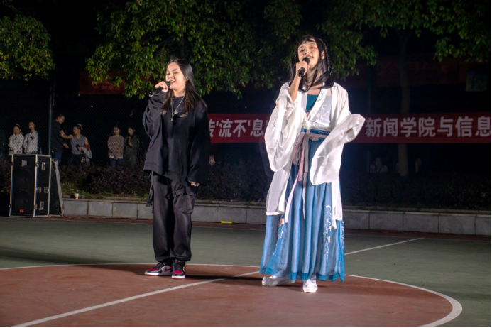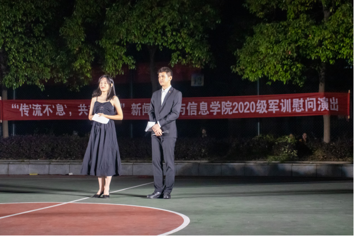 2020年10月14日19:20,新闻学院与信息学院联合举办的“‘传’流不‘息’,共赴韶华”军训慰问演出在大俱篮球场举行。此次慰问演出由信息学院文娱女生部承办,全体新闻学院和信息学院的2020级新生参加。