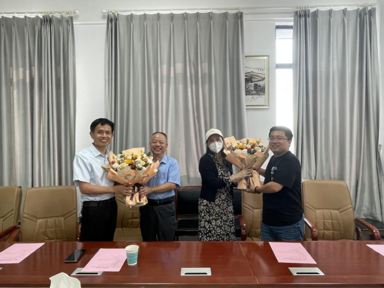 教研室主任严太山和李文彬分别为湛腾西和陈凯文老师献上了学院提前精心准备好的鲜花、暖心被和匠心杯,并发表了祝福感言,感谢荣休老师以爱育人、以诚待人、以德感人的默默奉献,祝福荣休老师今后生活更加丰富多彩!