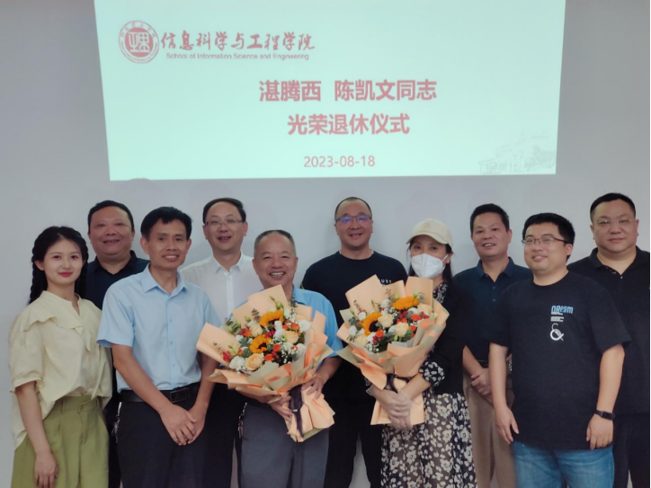 为表达对退休教师的感谢与敬意,弘扬优良师德师风,浓厚尊师重教氛围,8月18日下午,信息学院在17号楼517会议室为湛腾西和陈凯文老师举行荣休仪式,学院班子成员、工会委员、同事好友代表等10余人参加。荣休仪式由院分工会主席刘钢主持。