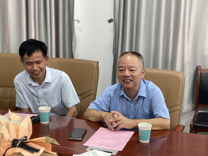 刘钢主席分别介绍了湛腾西和陈凯文老师工作简历。院长童耀南褒扬了他们为学院的发展做出的贡献,代表学院向两位老师致以崇高的敬意和衷心的感谢,并希望两位老师“退而不休”,常回学院看看,一如既往地关心学院发展,并祝愿两位老师退休后生活愉快、身体健康。