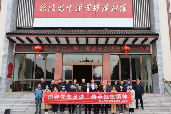 为深入学习贯彻党的二十届三中全会和全国教育大会精神,进一步激发教师党员的爱国情怀和革命精神,11月30日,信息学院党委开展“追寻先辈足迹,传承红色精神”主题党日活动。学院教师党员赴益阳市南县段德昌生平业绩陈列馆参观,并重温入党誓词。通过现场教学,党员同志追寻革命先辈足迹,弘扬爱国主义精神,汲取奋进力量。此次活动由学院党委副书记、院长童耀南,党委副书记付亚子,党委委员、副院长戴华及党委委员肖迎群带队,各党支部书记和支部教师党员参加。