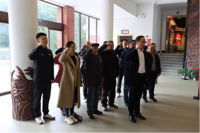参观结束后,在学院党委副书记、院长童耀南的带领下,全体教师党员面对鲜红的党旗,庄严地举起右手,重温入党誓词,表达对革命先烈的崇高敬意和对党组织的绝对忠诚。