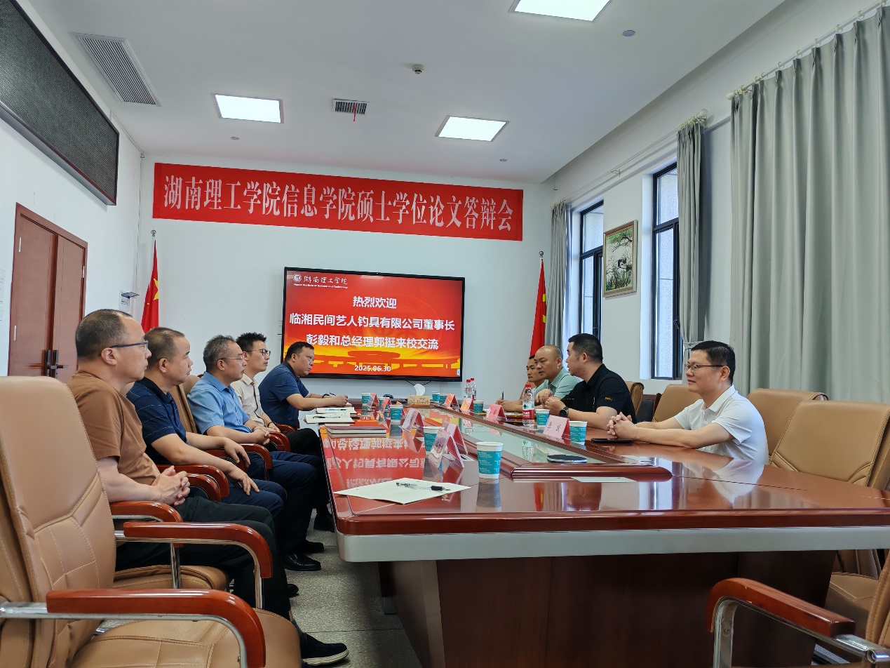 6月30日,我院迎来湖南岳阳临湘民间艺人钓具有限公司菫事长彭毅一行到访。学院院长吴健辉教授、副院长严权峰教授、副院长蒋军强博士,陈松老师、刘翔老师、杨宣兵老师和张舸老师参会,土建学院李斌副院长陪同参会。校企双方围绕该公司最新产品——高端夜光浮标当前面临的核心技术瓶颈,特别是灯带易损坏问题,展开了深入且富有成效的研讨交流,并初步敲定了从技术攻关到项目申报的全链条合作意愿,标志着校企合作在提升产业技术能级方面迈出坚实一步。