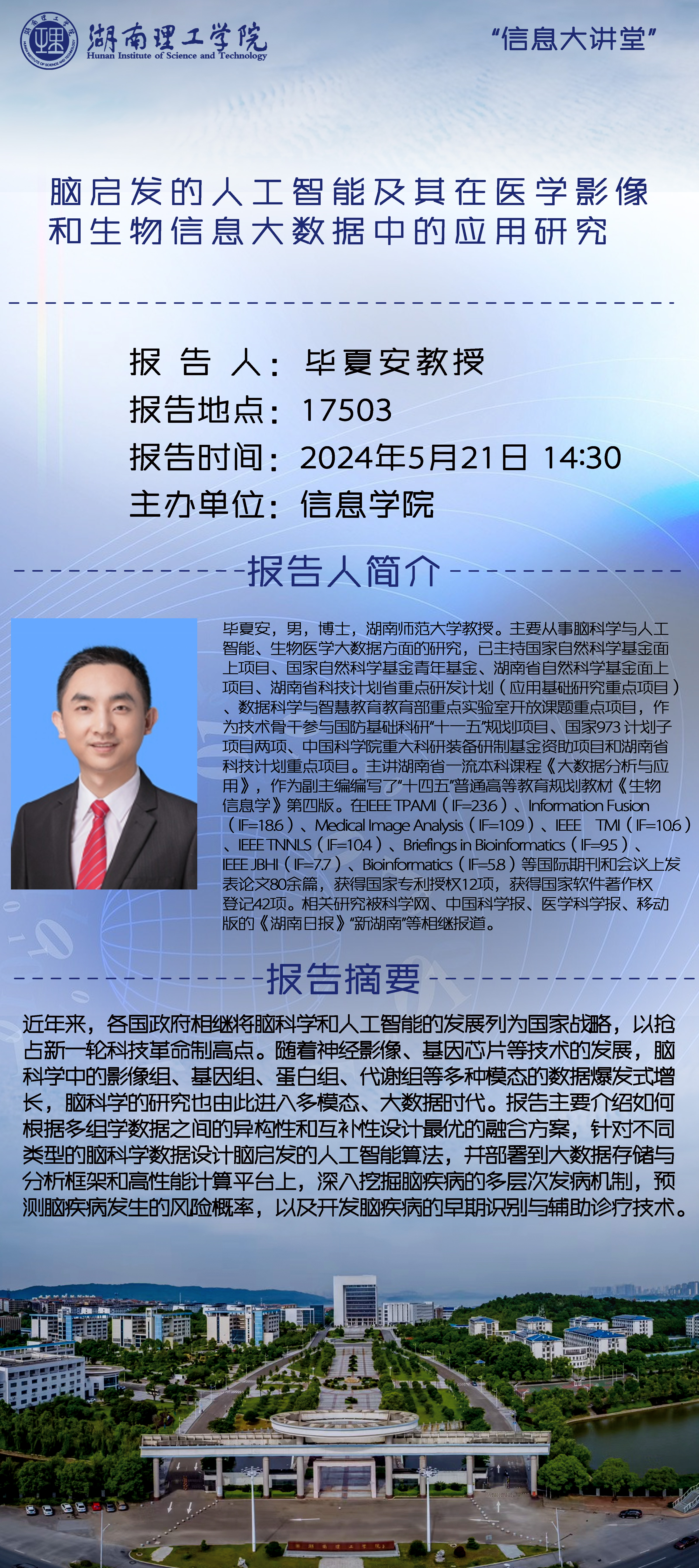 “信息大讲堂”学术报告预告-毕夏安教授