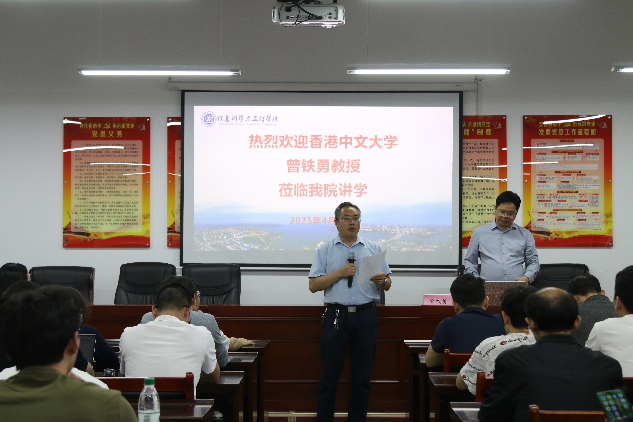 4月29日,香港中文大学数学人工智能中心主任、数学系教授曾铁勇受邀出席信息学院“信息大讲堂”,作为本年度的第2位主讲嘉宾,为师生带来前沿学术知识盛宴。
