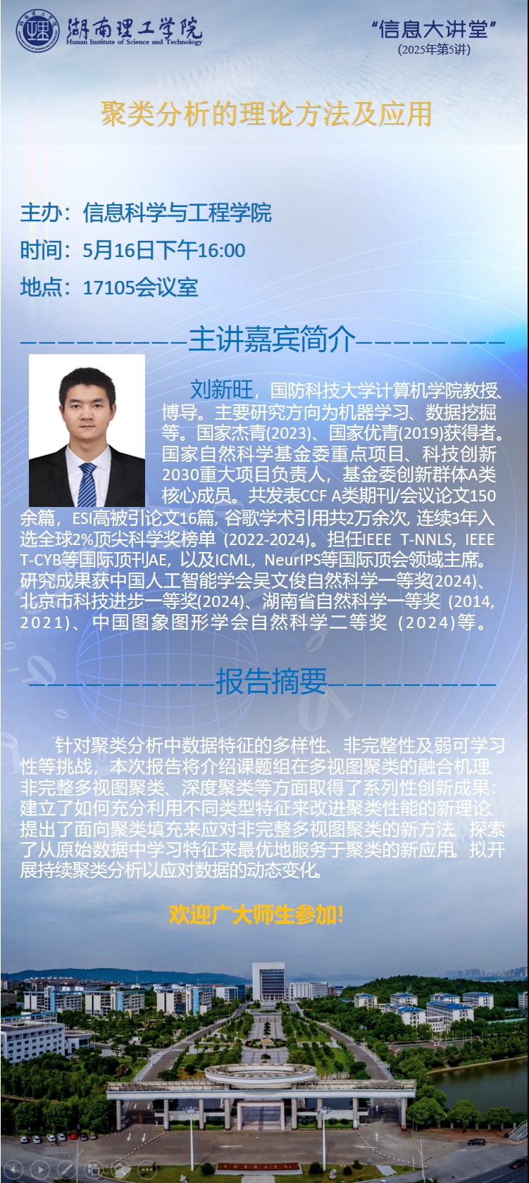 “信息大讲堂”学术报告预告-刘新旺教授