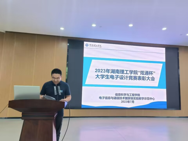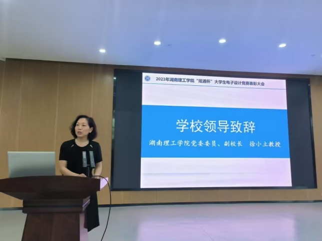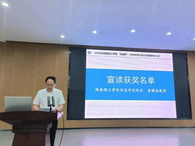 7月1日,2022年湖南理工学院“炫通杯”大学生电子设计竞赛表彰大会在17118圆满举行。校党委委员、副校长徐小立出席,教务处、信息学院、广州炫通电气科技有限公司相关负责人及获奖学生参加。本次竞赛由教务处举办、信息学院承办、炫通公司赞助,有来自信息、物电、机械、南湖等学院的244名学生参赛。竞赛采取了学校命题、企业命题和学生自拟题相结合的方式,融入“新工科”理念,对接产业需求,尊重学生兴趣,有效培养学生工程实践与创新能力。