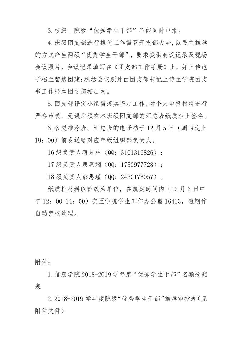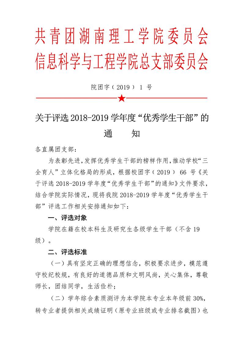 信息科学与工程学院关于评选2018-2019学年度“优秀学生干部”的通知
