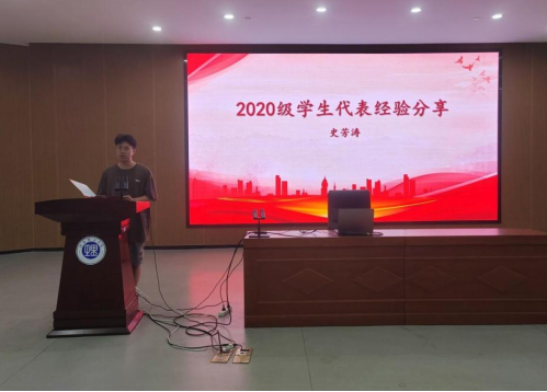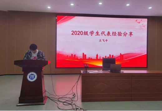 会议首先由史芳涛、王飞平、唐强、宋健、方艳橙等五位上届考研成功上岸的学生代表分享考研经验,他们分别考取了北京理工大学、南昌大学、武汉理工大学、中科院大学、湖南理工学院。五位同学根据自己的亲身经历与在座的21级学弟学妹们分享了自己的考研复习经验、备考心得,对于如何择校、如何获取资料等问题也提出了很好的建议。