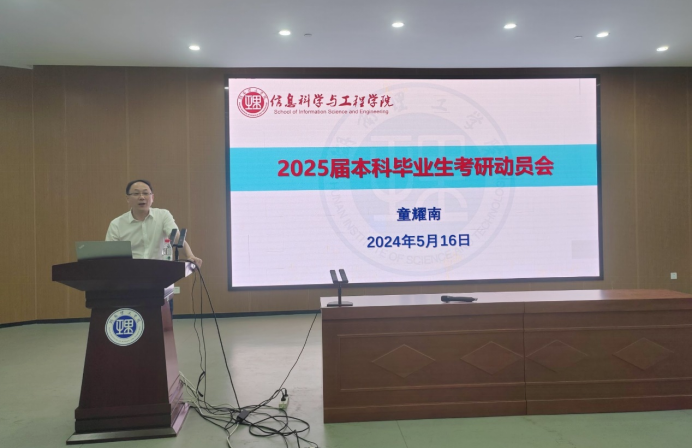 2024年5月16日,信息学院于17118举行2025届考研经验分享暨动员大会。21级各专业全体学生和部分21级班主任,以及院长童耀南、党委副书记付亚子、副院长戴华、21级考研专干余滔等老师共同参加了会议。