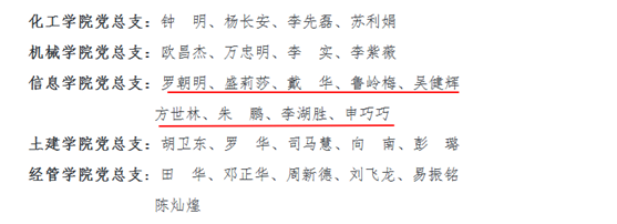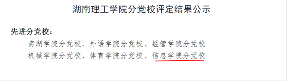 7月1日,学校召开庆祝中国共产党成立98周年暨“对标争先”表彰大会,回顾党的光辉历程,讴歌党的丰功伟绩。其中信息学院教工第二党支部荣获党建工作样板支部、涂兵同志荣获十佳党员标兵、罗朝明、盛莉莎、戴 华、鲁岭梅、吴健辉、方世林、朱 鹏、李湖胜、申巧巧9名党员教师荣获优秀共产党员、信息学院分党校荣获先进分党校荣誉称号。