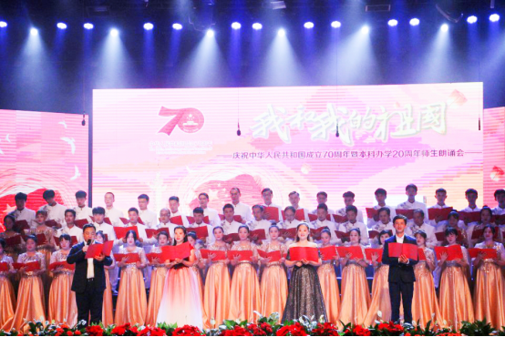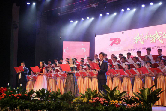 2019年9月29日19:00,为庆祝中华人民共和国成立70周年,大力弘扬以爱国主义为核心的伟大民族精神,我院师生积极参加在东院演播厅举办的 “我和我祖国”师生朗诵会。
