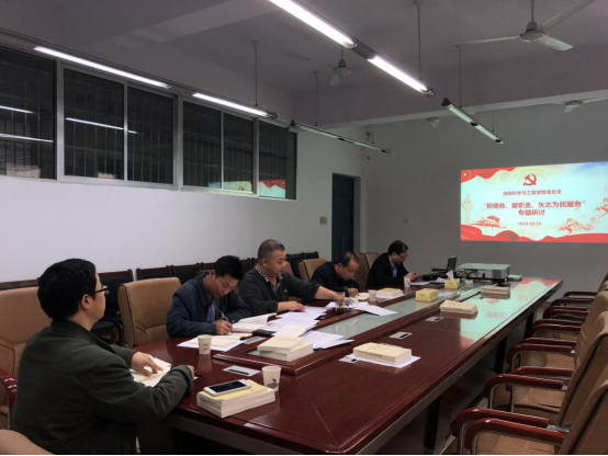 信息学院党总支成员10月15日下午4:00在16325会议室进行了“担使命、履职责、矢志为民服务”专题研讨,院总支书记甘向阳主持。