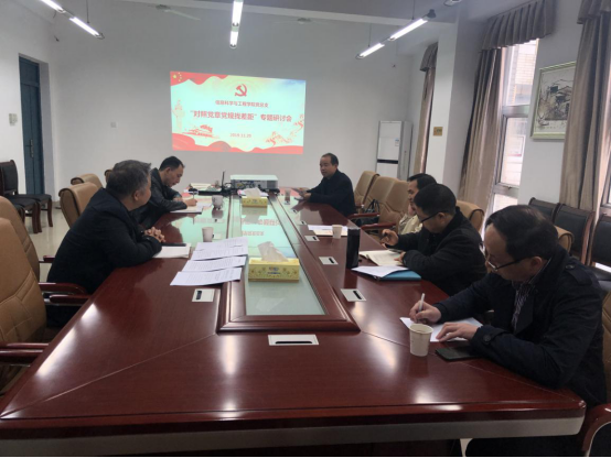 信息学院党总支成员11月20日下午14:00在16325会议室开展“对照党章党规找差距”专题研讨会,院总支书记甘向阳主持。