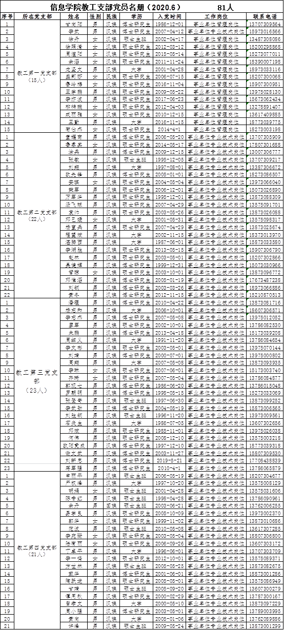 信息学院教工支部党员名册
