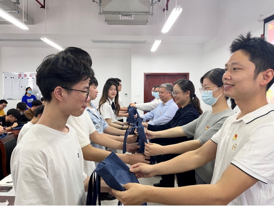 甘向阳、徐丹等老师代表学院向毕业生党员送出毕业寄礼,希望毕业生党员学党章、强初心。