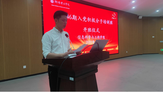 4月24日19:00,由信息学院承办的校第46期入党积极分子培训班开班仪式在17118顺利举行。院党委副书记徐丹、专职组织员周煊阳、学生党支部书记余滔、王学鹏、柳祎璇、路迎春出席,本期全体入党积极分子参加。仪式由王学鹏主持。
