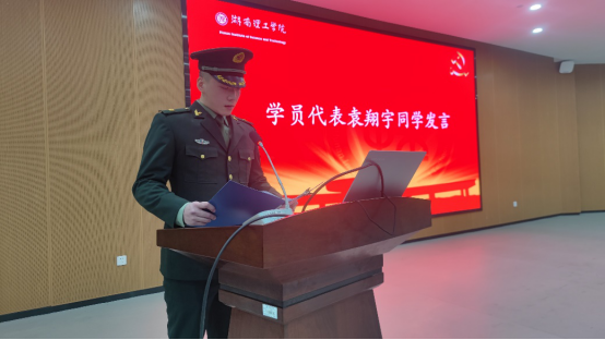 开班仪式在庄严的国歌声中拉开帷幕。袁翔宇作为入党积极分子代表发言,他饱含深情地回忆了自己艰苦而又充实的部队生活,并与大家分享了自己在部队获得的锻炼与取得的成就,提到参加了多个省份的抗洪抢险工作,党旗所指,便是行动所向,呼吁大家在思想上、政治上、行动上,都要做一名向党靠齐的优秀大学生。