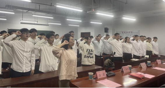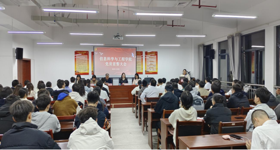 11月29日19:00,信息学院于17503组织新党员宣誓大会,出席会议的有院党委书记甘向阳、党委副书记徐丹、专职组织员刘照馨、学生第一党支部书记王艳芬、研究生党支部书记米阳,全体预备党员、正式党员及入党积极分子代表参加会议,会议由余滔主持。