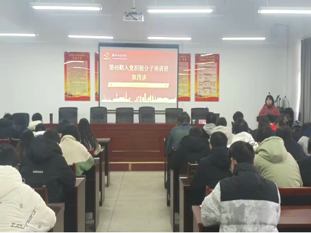 11月30日16:00,信息学院第49期入党积极分子培训班第四讲在17503教室顺利开讲。本次党课由院党委副书记徐丹主讲,专职组织员刘照馨主持,本期全体入党积极分子参加。