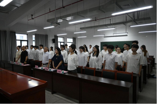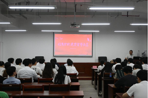 6月20日13:30,信息学院党员宣誓大会在 17503 教室庄严举行。学院党委书记肖迎群、专职组织员刘照馨,学生第一支部书记王艳芬、第三支部书记李亦波、研究生党支部书记朱甜甜出席大会,共同见证新党员加入党组织这一神圣时刻,大会由院党委副书记付亚子主持。