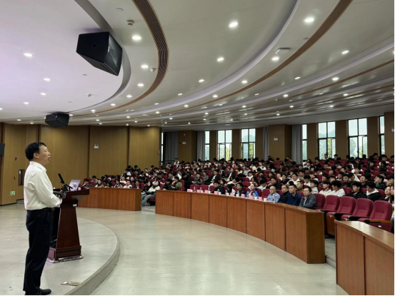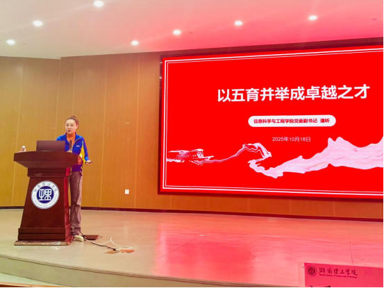 最后,学院党委副书记潘昕介绍学院学生工作情况,以“五育并举成卓越之才”为主题,鼓励新生在青春岁月里通过奋斗实现自我升华,在湖南理工学院这片热土上,明德修身、笃学精进、止于至善,以青春之志、青年之力,书写属于自己的光辉篇章。