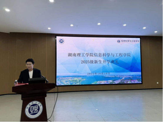 10月18日下午2:30,湖南理工学院信息科学与工程学院2025级新生开学典礼在17118会议室隆重举行。湖南理工学院校长曾祥君出席会议,并做主题报告。信息学院全体在家班子成员、2025级新生辅导员、班主任及全体2025级新生出席典礼,典礼由信息学院肖迎群主持。