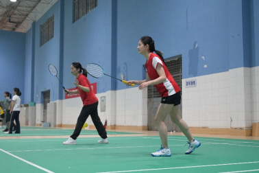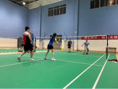 “砰—吱—砰—吱—砰—吱—”,扬拍发力,迅速移动,交叉换位,学校羽毛球馆内人头攒动、热火朝天,信息学院分工会羽毛球队员们正在挥汗如雨对抗训练,与馆外新生军训此起彼伏的“敢打必胜”口号声交相辉映,协奏出悦耳舒心而又振奋人心的春日湖畔校园曲。