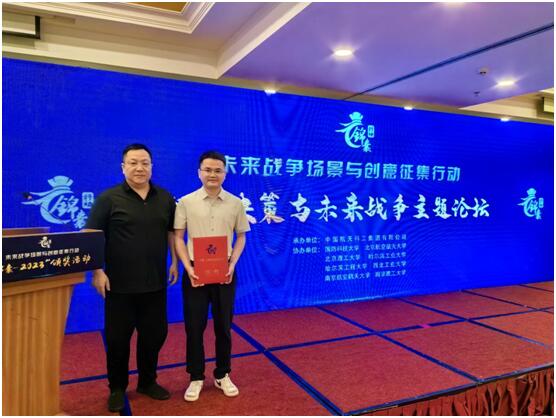 近日,信息学院“复杂工业物流系统优化与控制”湖南省高校科技创新团队、“复杂工业物流系统智能控制与优化”湖南省重点实验室导师团队,指导研究生周健荣获“锦囊-2023”未来战争场景与创意征集行动三类作品奖励,学校科研院副院长刘钢作为院校代表受邀参会交流,指导教师黄冬博士作为团队代表上台领奖。