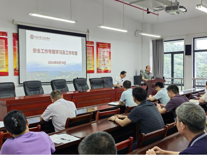 为增强学院全体教职员工的安全意识,确保全院师生生命财产安全,有效防范安全事故的发生,6月18日下午14:30,信息学院于17503会议室召开安全工作专题布置会。信息学院领导班子出席会议,信息学院全体教师参与会议。本次会议由信息学院院长童耀南主持,副院长严权峰主讲。