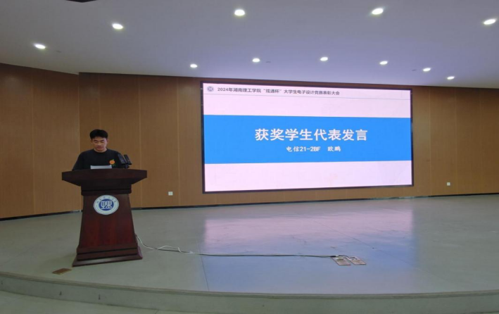获奖学生代表欧鹏表示装置的成功制作离不开前期在信息学院创新基地的知识积累和老师们的悉心指导,同时感谢学校以及炫通公司给予的宝贵机会和资源。表达了自己要以更加坚定的信念和努力的态度为国家的科技发展贡献智慧和力量。