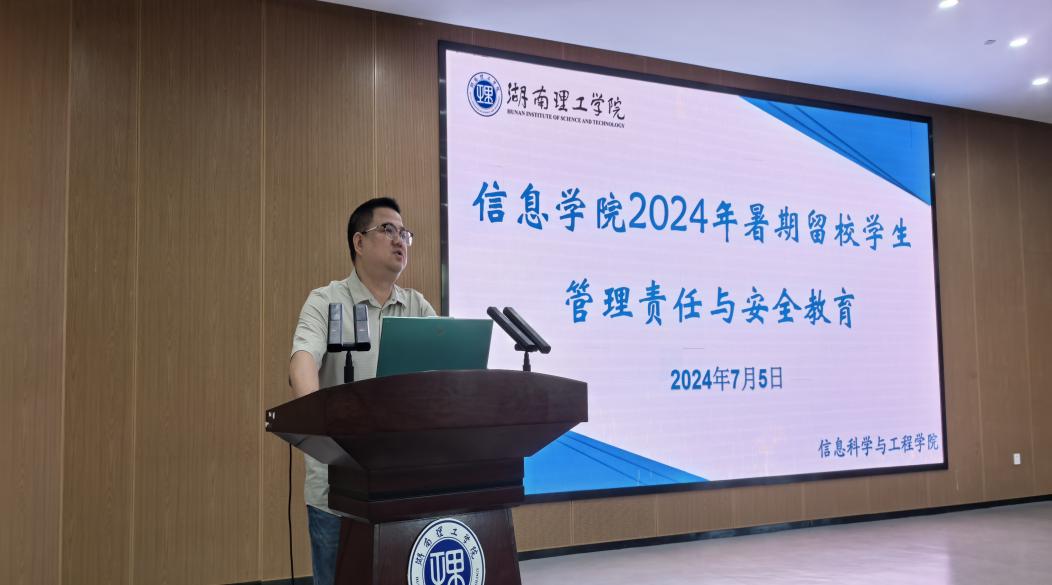 为保障学院暑期留校工作顺利开展,加强留校学生安全教育。7月5日上午,信息学院在17118会议室召开2024年暑期留校学生安全教育大会,学院院长童耀南、党委副书记付亚子、副院长蒋军强出席会议,各项学科竞赛指导老师、2021级全体班主任、全体辅导员老师以及2024年学院全体暑期留学生参加会议。会议由学工办主任徐壮主持。