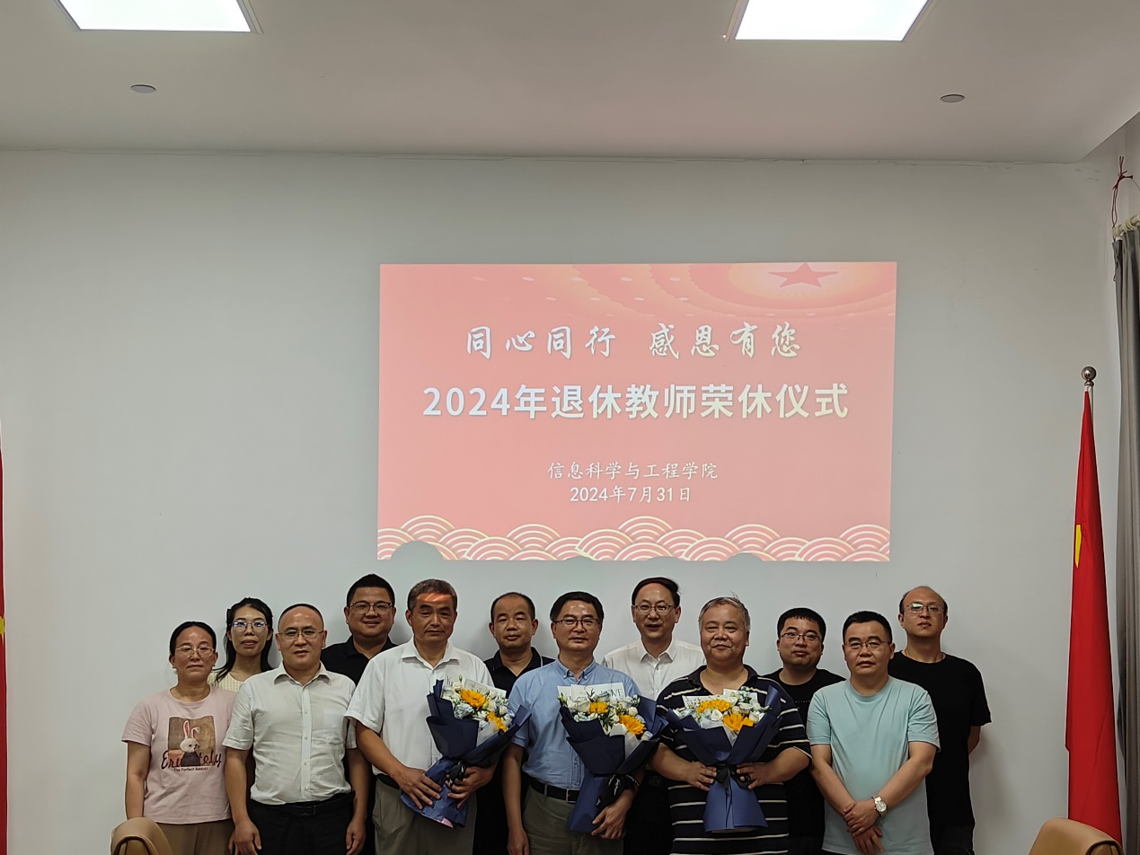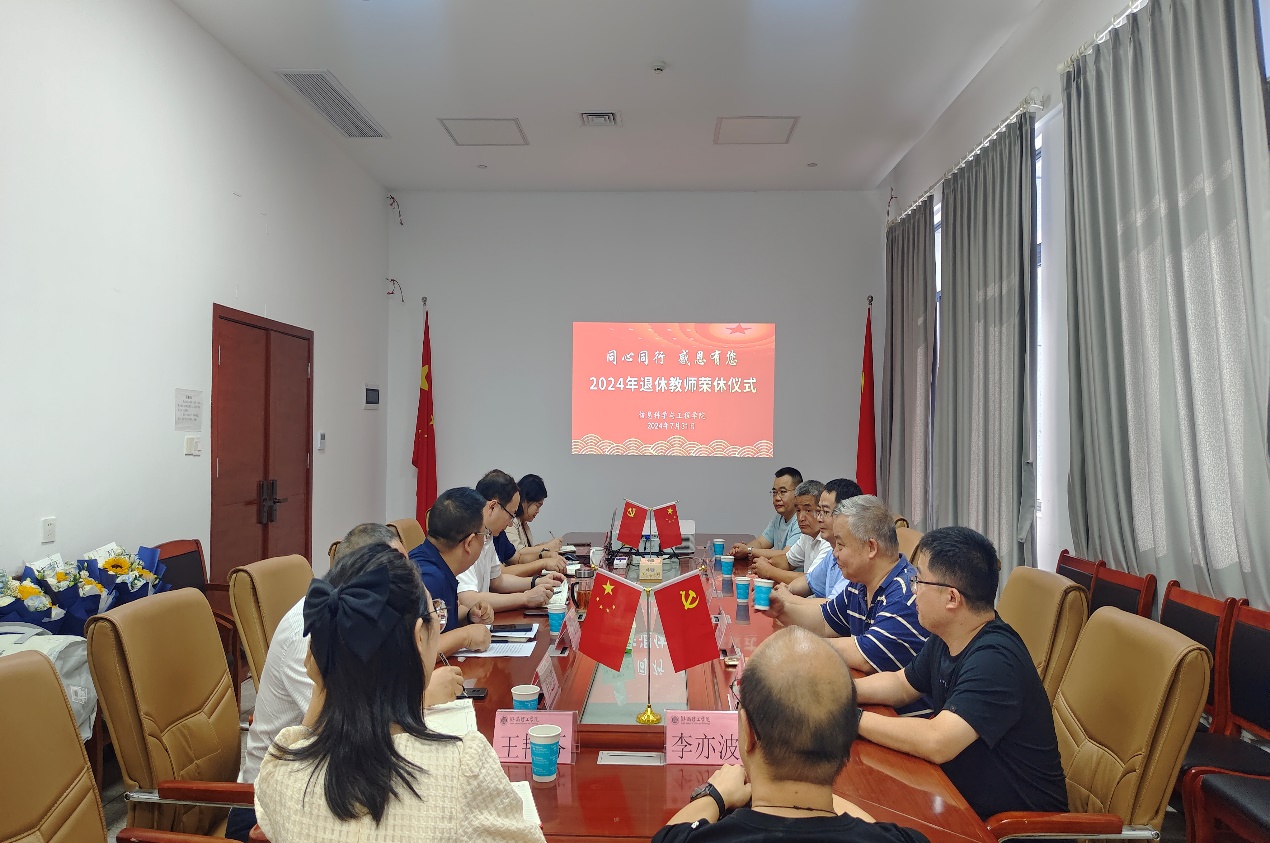岁月染芳华,桃李育芬芳。为表达对学院荣休教师多年来爱岗敬业、辛勤耕耘的致敬与感恩之情,7月 31日下午,信息学院在17517会议室为郭观七、甘向阳和吴柯三位老师举行荣休仪式。现场气氛温馨而又感人,学院领导班子成员、相关教研室负责人、分工会委员、行政人员及教师代表参加,仪式由院党委副书记付亚子主持。