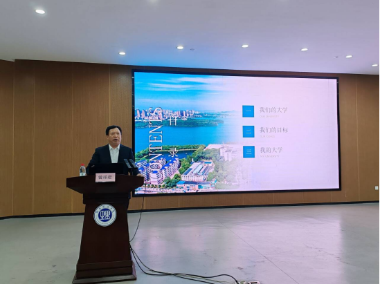 会上,校长曾祥君以“把青春华章写在最美校园”为主题,从“我们的大学、我们的目标、我的大学”三个方面与新生畅聊,帮助新生熟悉大学环境,明确奋斗目标。同时,他还从学校的根本任务、学校校训精神、办学理念与历程、教学科研成果等方面,介绍了学校的发展与建设情况。他勉励学生,做到“五好”--德康能知美,坚持“五守”--守时守序守信守纪守法,在大学期间要下苦功夫求真学问。他期望大家在大学期间做到“四自”和“四会”,即自我管理、自我服务、自我教育、自我监督;学会做人、学会做事、学会与人相处、学会学习。