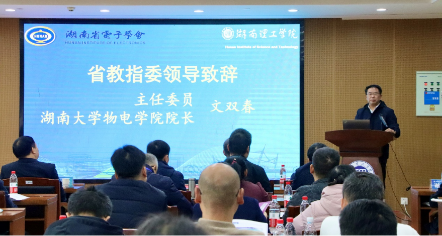 国家级高层次人才、湖南省普通本科高校电子信息类专业教学指导委员会主任委员、湖南大学物理与微电子科学学院院长文双春教授致辞