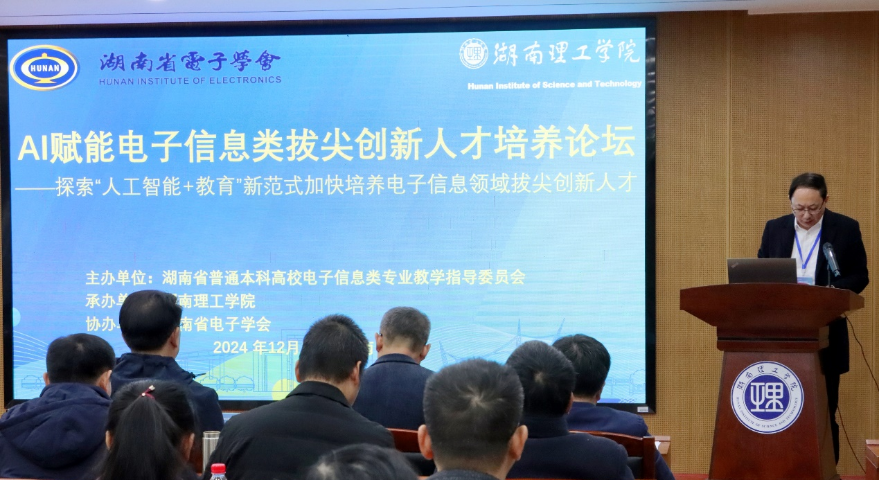 12月14日,AI赋能电子信息类拔尖创新人才培养论坛在我校拉开帷幕,由湖南省普通本科高校电子信息类专业教学指导委员会主办、湖南理工学院承办、湖南省电子学会协办,来自北京大学、清华大学、电子科技大学、贵州大学和省内高校的专家学者和我校相关老师150余人参加。