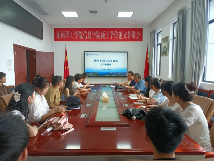 为保障2025 IEEE 2nd International Conference on Electronics, Communications and Intelligent Science(IEEE 第二届国际电子、通信与智能科学会议,ECIS 2025)的圆满举行,5 月 21 日,作为主办方的湖南理工学院信息学院于 17517 会议室召开 ECIS 2025 会前工作任务布置会。此次会议由分管科研的副院长蒋军强主持,学院院长吴健辉受邀出席,鲁岭梅等老师及全体志愿者参会,共同为这场国际学术盛会的开办工作凝聚力量。