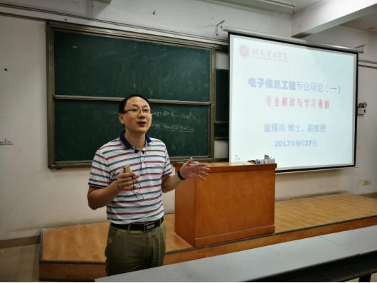 就在17级新生开课第一周,为使学生对电信专业有初步了解与规划,信息学院于15317举行电子信息工程专业导论入学教育讲座。信息学院院长助理童耀南、副教授程望斌应邀主讲。
