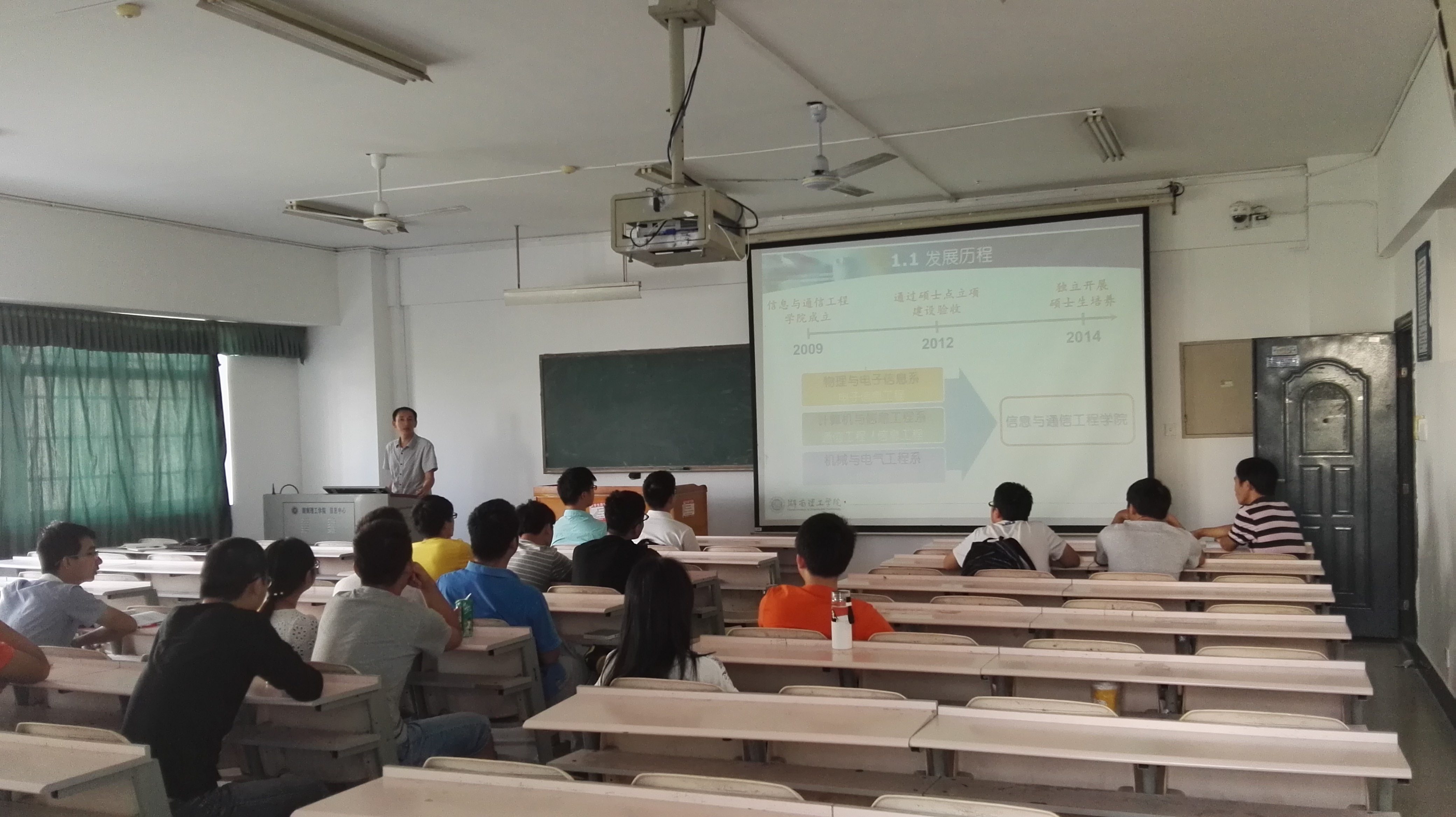 9月下旬,信息学院李武院长、潘理副院长先后在计算机学院、物电学院、数学学院进行2017年信息与通信工程专业硕士研究生招生宣传。他们针对上述3个学院2017届考研学生,从学科概况、招生考试、培养效果等方面进行宣讲,详细地阐述了我校信息与通信工程一级学科硕士点优势、招生考试科目、招生培养优惠政策,以及该专业研究生培养成效,鼓励同学们踊跃报考,并就同学们提出的报考、调剂、培养等相关问题进行一一解答。宣讲报告中详实的数据、生动的事例和显著的成绩,吸引了同学们对我校信息与通信工程硕士点的关注。