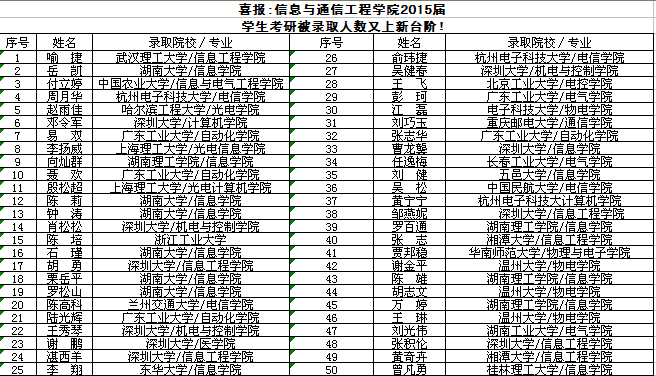 我院2015届毕业生硕士研究生考试传来喜讯,我院50名学生经过为期一年多的艰苦备战,最终通过全国硕士研究生招生入学考试复试被录取。