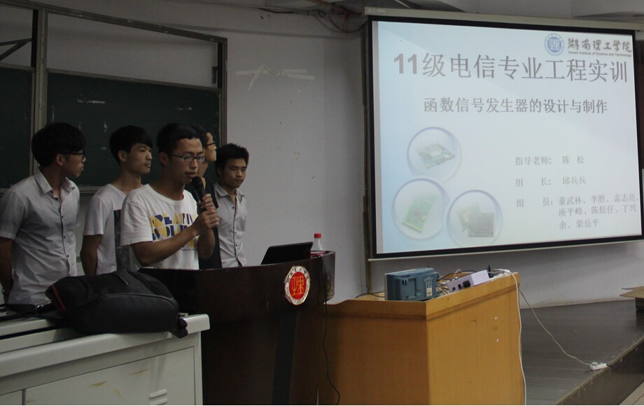 首先,吴健辉老师简要介绍了此次工程实训的情况。汇报会上参训的各组同学均按照展示、汇报、演示三个环节进行了汇报。学生轮流登台演示介绍所做“数控直流恒流源”、“高保真有源音箱”、“多功能数字万用表”、“失真度测量仪”和“函数信号发生器”等产品。每一件产品都制作精湛,性能优良,完全达到了工程实训的要求。在汇报过程中,台上的设计者们思路清晰,娓娓道来;台下的专家听的饶有兴趣,不断提问与点评;观摩的同学们则不时发出惊叹声和报以阵阵掌声。产品演示完后,在接下来的专家点评中,肯定和鼓励很多,大家深受鼓舞 。最后,参与实训的每一位同学们都发表了自己的感言,他们说工程实训让大家在理论中学习,在实践中成长,收获颇丰、影响长远。通过观摩,对2012和2013级同学起到了良好的激励作用,同学们进一步明确了自己的学习目标,一致表示对未来的大学生活和专业学习充满信心和期待,特别是参训的各位女同学的表现更是让大家惊叹,也更坚定了大家能学好本专业的决心。