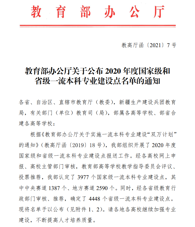 近日,教育部办公厅发布了2020年国家级和省级一流本科专业建设点名单,我院计算机科学与技术专业获批为国家级一流本科专业建设点,通信工程专业获批为省级一流本科专业建设点。