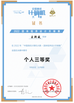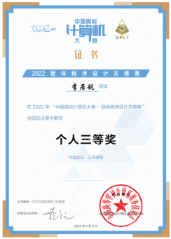 近期,第7届中国高校计算机大赛——团体程序设计天梯赛顺利结束,信息学院计算机类等本科专业生喜获全国团体铜奖1项和全国个人铜奖2项。