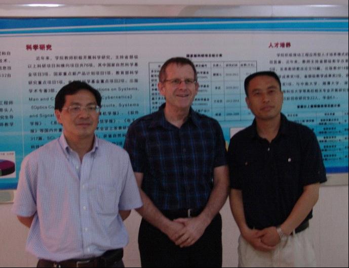 2013年5月30日上午, 美国乔治福克斯大学副校长Thomas Peng博士及Meade博士一行3人来我院访问考察,并与学院领导进行了交流座谈。交谈结束后,一行人在我院领导的陪同下,走访参观了学院大楼实验室。考察过程中,Thomas Peng博士多次详细询问各实验室的设备运行情况,并参与了模拟操作。参观完后,他们对我院实验室给予了高度评价。